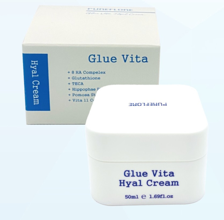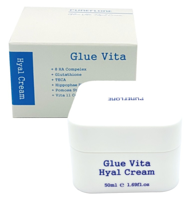 A powerful blend of eight types of hyaluronic acid, glutathione, TECA,